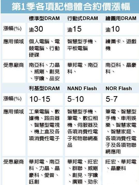 今年存儲芯片缺貨效應(yīng)持續(xù)擴(kuò)大,繼DRAM、儲存型快閃存儲(NAND Flash)在淡季飆出歷年最大漲幅后,編碼型快閃存儲(NOR Flash)也在睽違四年多來初次提價,第一季度調(diào)漲5~7%不等,下季漲幅更大,估計漲幅逾10%?!?br />