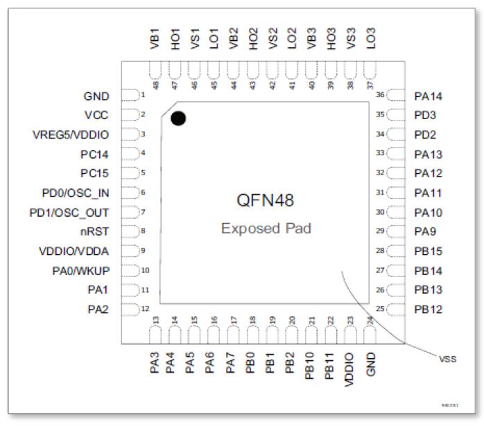 國產32位單片機MM32SPIN360C擁有M0內核的高性能32位微控制器,5V輸出的LDO穩(wěn)壓器、三組具備有自舉二極管的N通道半橋柵極驅動器。MCU最高工作頻率可達96MHz,并內置SRAM高速存儲器,增強豐富型I/O端口和外設連接到外部總線。采用QFN48封裝形式。本產品包含2個12位的ADC、3個比較器、3個運算放大器、1個16位通用定時器、1個32位通用定時器、3個16位基本定時器、2個16位高級定時器。還包含標準的通信接口:1個I2C接口、1個SPI接口和2個UART接口。