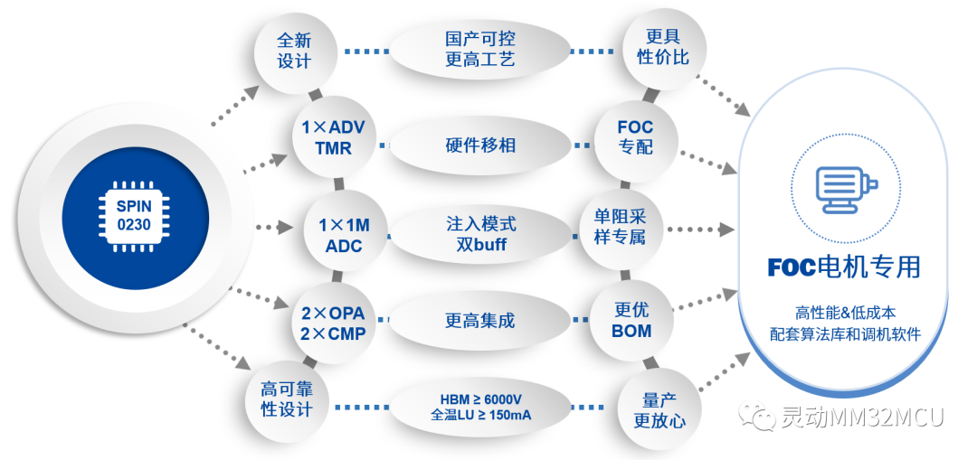 國產(chǎn)單電機(jī)控制32位電機(jī)MCU靈動(dòng)微MM32SPIN0230