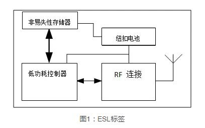 結(jié)構(gòu)最簡(jiǎn)單的ESL由一個(gè)LCD或電子、RF模塊、墨水顯示屏、配套處理器、紐扣電池和低引腳數(shù)存儲(chǔ)器(易失性和非易失性存儲(chǔ)器)構(gòu)成??梢愿鶕?jù)需求功能的不同,將所需要的價(jià)格走向,購(gòu)買(mǎi)走向和當(dāng)前庫(kù)存信息存儲(chǔ)在ESL中,待一天結(jié)束刷新中央服務(wù)器的數(shù)據(jù)。如果要實(shí)現(xiàn)用一顆小紐扣電池供電并維持?jǐn)?shù)幾年的工作機(jī)能需要讓整個(gè)系統(tǒng)使用一個(gè)低功耗控制器和存儲(chǔ)器?;趦?nèi)置的連接選項(xiàng)(通常是BLE或Wi-Fi),板載存儲(chǔ)器可兼作協(xié)議棧存儲(chǔ)空間,繞過(guò)商場(chǎng)的中央服務(wù)器,直接連接用戶手機(jī)。